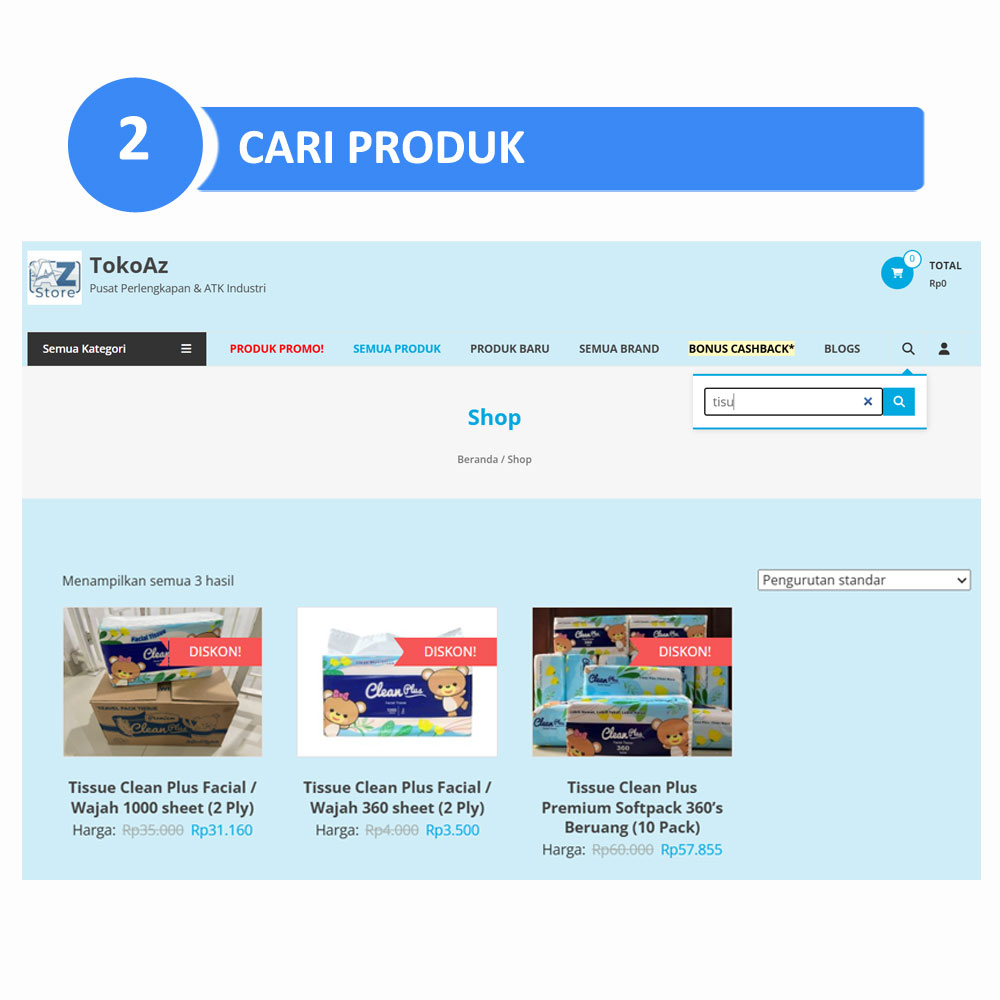 Catatan : Jika Anda mengalami kesulitan saat melakukan pemesanan produk melalui website, silahkan kirimkan PO (Purchase Order) Anda melalui email ke info_cs@tokoaz.com atau hubungi kami di nomor 0821-7370-0068