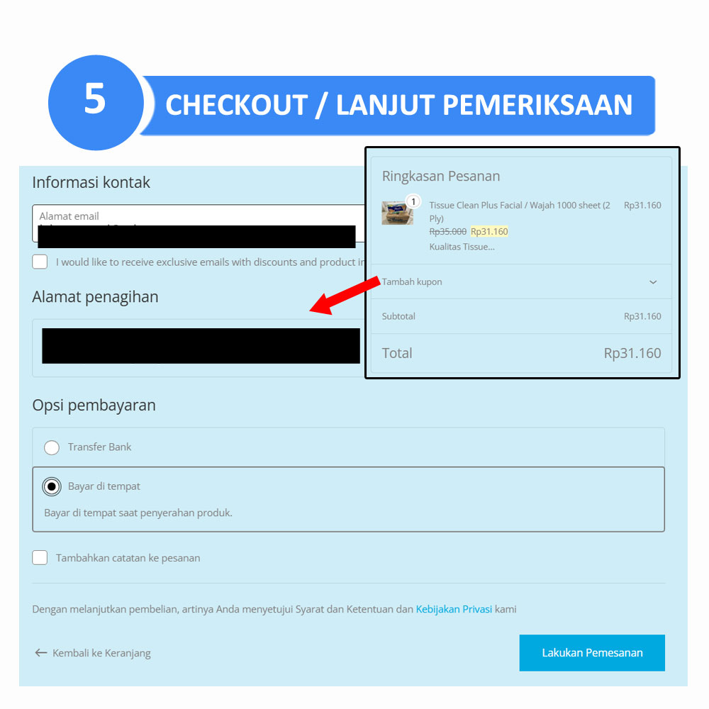 Setelah masuk ke Keranjang Belanja Anda harus mengisi data untuk melanjutkan proses Checkout